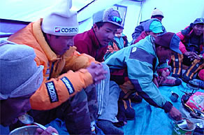 チョンリンジにはデンドゥという弟がいた。96年、チョオユに共に登頂し、2000年のチョモランマ清掃登山では最もゴミを回収したシェルパだ。しかし、2000年8月、彼も突然病に倒れ還らぬ人となってしまった。その二ヵ月後、やはり僕を支えつづけたラクパというシェルパも突然死している。相次ぐ、シェルパの死。ネパールに来るたびにシェルパ達の死を耳にする。命を削りながらヒマラヤで働くシェルパ達。チョンリンジやデンドゥ、ラクパの死は、我々登山隊の犠牲だ。長年ヒマラヤに登りつづけている彼らの体はボロボロだ。登山隊側のシェルパへのアフターケアーが求められている。この2001年エベレスト清掃登山が終了すれば、カトマンズでシェルパ達のドクターチェックを実現させたい。シェルパ達を使い捨てにしないためにも、シェルパらの健康管理は各登山隊の義務にするべきじゃないだろうか。
