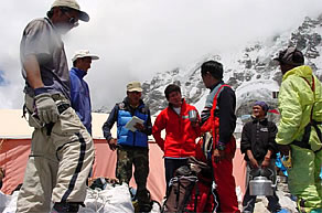 と突然の悲報に驚かされた。チョンリンジはダワタシの親戚にあたり、我が隊でも昨年のチョモランマ清掃登山ではシェルパとして参加してくれていた。実績もあり、体力的にも他のシェルパを圧倒していた彼だったが、昨年のチョモランマでは顔色が土色になり、目が充血し、いかにも体調不良でグルジア人医師のズーラに診察してもらったら肺水腫の可能性があると診断され、遠征期間の大半をベースキャンプで過ごしていた。僕に何度も、