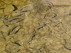 しばらく歩いてふと川の方へ視線をよせたら魚がうじゃうじゃいる! 5000mの標高で魚を見るのは初めて! よくよく見ると口が平べったくひげが生えハゼのような魚や、白神山地で見たような岩魚のような魚だ。このような高原で命とめぐり会え、自然界の生命力を感じた。しかし、同時に、それこそ網があれば大漁だ。