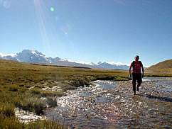 かつてヒマラヤでは経験したことのない低所での高度障害。7000mまではいつでもすんなりと高所順化できていただけに、どこかで自分を過信していたのかもしれない。自分を知る良い機会になれば・・・と思う。でも、体とは面白いもので山に来ると自分の体調の具合がよく分かる。これは時間単位ではっきり自覚できる。今日、明日とどこまで回復できるのか、どうすればこの状態から脱出できるのか、これも挑戦。大切なのはいつでも前向きであるということ。必ずこの状態から抜けられるはず。 今日はハードに斜面を登るのは控え、BC前の川を上流に向かってのハイキング。高山病の時にテントの中でじっとしているのが一番いけない。精神的に参ってしまうのと、少しでも体に負荷をかけながら低酸素を全身に配れるような体質作りをしなければならないので、いずれにせよ体を動かさなければならない。