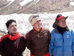 シシャパンマはABCが遠く、遮断物が多い為、キャンプ3まで無線機が使えません。よって今回は隊長が帰ってくるまでの4,5日間、無事を祈って待つだけです。残されたコックのペンバ、キッチンボーイのデンディと3人で毎日祭壇の前で祈ります。