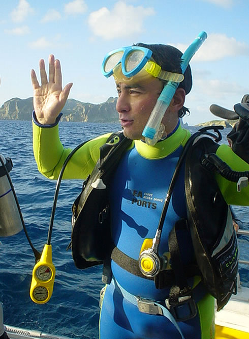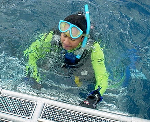 そして大量のノコギリダイの群れ。このノコギリダイの背中は蛍のような光を発する。砂丘のような真っ白な海底にこの無数の蛍の光は神秘という以外に言葉が見つからない。ヒマラヤから下りてくれば日課になっているスキューバー・ダイビング。この10年間、世界の海に潜り続けてきたが、ガラパゴスと小笠原でのダイビングは特別だ。生涯忘れることの出来ないこの体験は素敵な宝物だ。