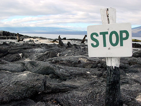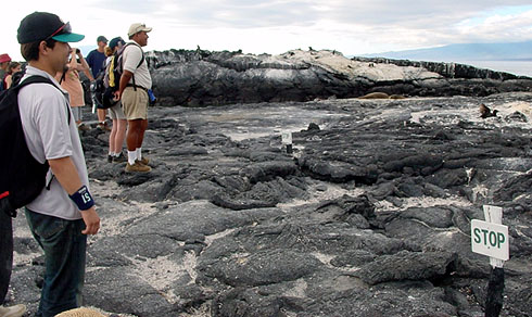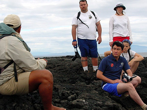 ガラパゴス諸島にはおおよそ16の島があるのだが、この島々をめぐるアンバザダー号に乗り込んだ。アンバザダー号は150人乗りの客船でナチュラリスト・ガイドとのエコツアーの参加者のみ乗船が許される。そもそもガラパゴスの国立公園内ではナチュラリスト・ガイドが同伴でなければ入ることが許可されない。乗船してすぐにナチュラリスト・ガイドからの説明会が開かれた。真っ先にガラパゴス諸島自然保護のために守らなければならないマナーやルールから始まった。動植物のみならず貝殻や砂、石、木片など全ての自然の状態にあるものを移動したり持ち帰ることの禁止、食べ物やアルコールなどの持ち込み禁止、トイレも小・大のいずれも島では禁止、動物へ餌を与えるのも禁止、動物への配慮(人間から一方的に近づかない)など、厳しく注意事項が繰り返し説明された。ナチュラリスト・ガイドから何度も何度も「ここは国立公園ですから!特別な場所です」「厳しいルールがあるからこそこの美しい自然が残されています」。
