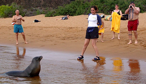 タンザニアのエコツアーでも感じたことだけれど、ここでは人は特別扱いされない。我々、人間もアシカやイグアナなどと同じで、そこに存在する生物の一種でしかないのだ。普段、我々はいかに自然や動植物に対して傲慢に生きていないだろうか、人も他の動物達と同様に地球上の哺乳類として生かされているにすぎないのだから、もっともっと自然や地球に対して謙虚になるべきじゃないだろうか。うまく表現できないけれど、タンザニアやガラパゴスで感じたこの気持ちが自然を守っていくうえで最も大切なことなんじゃないかと思えてならない。「人間も動物」だということ、そして動物には動物の世界のルールがある。都会の生活の中で本来の人としての姿を見失い、人間中心主義の社会を築いてきてしまった。その過ちを五感で感じさせてくれたのが僕にとって「エコツアー」だった。