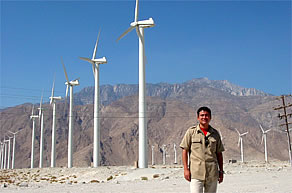 帰国前日、サクラメントからオンタリオのパームスプリングスの大風力発電所に訪れてみた。パームスプリングでは風力発電や豊富な太陽光により、ソーラーパネルで発電を行い、その電力で水を分解して水素を作るプラントが稼動している。自然エネルギーのみで、新たなエネルギーの生産に成功している。水素エネルギーをはじめとする最新技術と地球の自然から得る循環型エネルギーの融合。この2つの融合が地球温暖化を防ぐ救世主となるのだろうか・・・。なかなか答えを見つけ出せない地球環境問題。